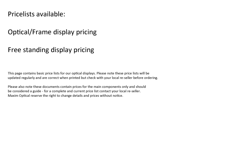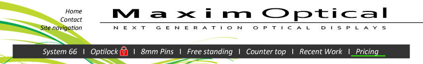 Contact Maxim Optical Navigate this website Non-locking frame displays Locking frame displays Non-locking frame displays Free standing displays Counter top displays Recently completed shops